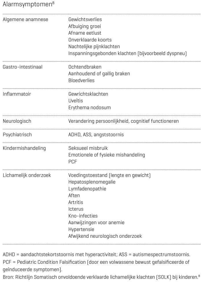 Aanhoudende lichamelijke klachten (ALK) komen veel voor op de kinderleeftijd. Voor huisartsen vormen deze klachten vaak een uitdaging. Bij kinderen met ALK kunnen aandacht voor het taalgebruik en een stapsgewijze aanpak volgens het biopsychosociale model overdiagnostiek en medicalisering voorkomen.