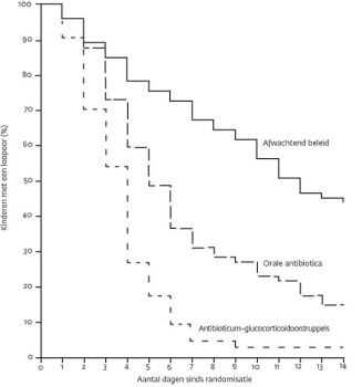 In het jaar na plaatsing van trommelvliesbuisjes krijgt 67% van de kinderen een of meer looporen. Het staat niet vast welke behandeling het meest effectief is in de acute fase: antibiotica(glucocorticoïd)oordruppels, een oraal antibioticum of een afwachtend beleid. Behandeling met…