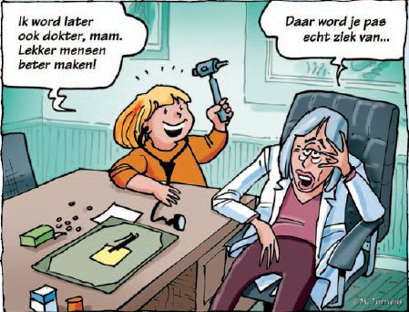 Hoe het vak binnen één generatie volledig van kleur kan verschieten? Lees mee met een gesprek dat mijn vrouwelijke collega had met haar dochter (waarbij ‘M’ en ‘D’ staan voor ‘moeder’ en ‘dochter’). M: ‘Wil je dókter worden, kind? Zeg alsjeblieft dat het niet waar is…’ D: ‘Ik meen het, mam…