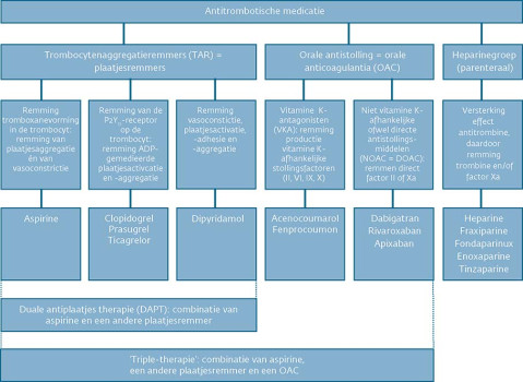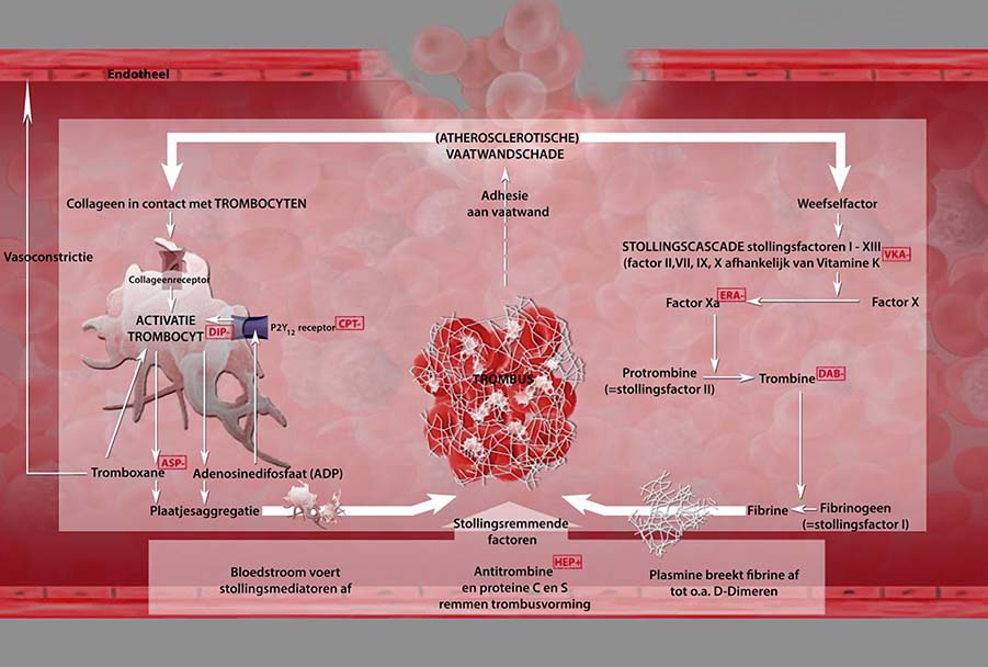 Trombocytenaggregatie enerzijds en vorming van fibrinedraden via de stollingsfactoren anderzijds leiden tot een stabiel stolsel. Elk antitrombotisch medicament grijpt aan via een van deze twee systemen. …