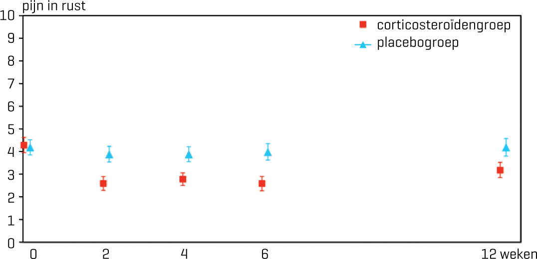 Verschillende internationale richtlijnen adviseren een intra-articulaire corticosteroïdinjectie bij pijnlijke heupartrose, maar de systemische werking van corticosteroïden bij heupartrose is onbekend. Kunnen intramusculaire corticosteroïdinjecties de pijn verminderen?