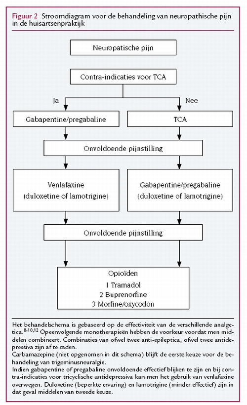 Analgetica ter verlichting van neuropathische pijn kunnen, op basis van effectiviteit en mogelijk optreden van bijwerkingen, onderverdeeld worden in middelen van eerste, tweede en derde keuze. Amitriptyline is het middel van eerste keuze voor de behandeling van neuropathische pijn. …