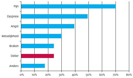 In de stervensfase kan een delier het afscheid nemen voor de patiënt en diens naasten verstoren. Bewustzijnsverandering die in korte tijd ontstaat (uren tot dagen) met een aandachtsstoornis, incoherent denken of desoriëntatie wijst vaak op delier, vooral als de symptomen over het etmaal…