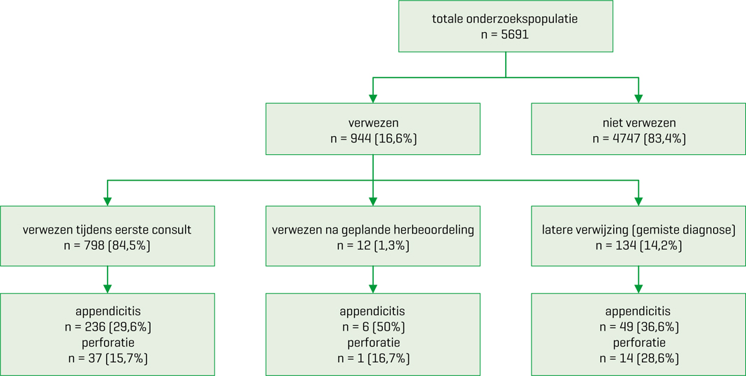 Voor huisartsen is het een uitdaging om acute buikpijn bij kinderen te beoordelen. In dit retrospectieve cohortonderzoek is gekeken naar hun handelen en naar de diagnostische waarde van de (alarm)symptomen die bij anamnese en lichamelijk onderzoek kunnen worden gevonden. De auteurs includeerden 5691 kinderen van 4 tot 18 jaar die in de periode 2010–2016 bij de huisarts waren geweest met acute buikpijn (≤ 7 dagen). Van de kinderen die waren verwezen (16,6%) had een derde (5,1%) appendicitis. Vooral het lichamelijk onderzoek is belangrijk om appendicitis meer of minder waarschijnlijk te maken: loslaatpijn (32,1%) en défense musculaire (35,8%) vergroten die kans, afwezigheid van drukpijn in de rechter onderbuik (0,6%) maakt de kans kleiner.