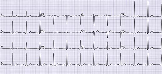 Het ecg van deze patiënt ziet er als volgt uit: Vanwege de matig gereguleerde bloeddruk wordt er een ECG gemaakt. Beschrijf het ECG systematisch volgens ECG-10+ . Heeft het ECG consequenties voor uw beleid?
