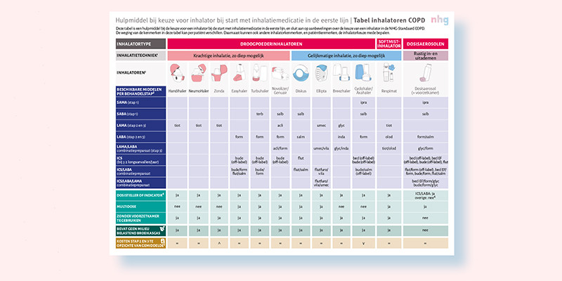 Eind 2021 introduceerde het NHG overzichtstabellen van inhalatoren voor volwassenen met astma en COPD. Een van de voorwaarden was toetsen of de tabellen goed werken in de praktijk. Momenteel zitten we middenin dat proces.