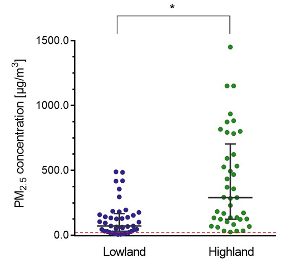 Eerdere onderzoeken naar de relatie tussen hoogte en COPD trokken tegenstrijdige conclusies. Een van de belangrijkste risicofactoren voor COPD wereldwijd namen ze daarbij echter vrijwel niet mee: fijnstof binnenshuis. Daarom vergeleken wij fijnstofconcentraties en COPD-prevalentie binnenshuis tussen hooglanden en laaglanden in Kirgistan. Zowel fijnstof als COPD kwam alarmerend veel voor in de hooglanden. Maar ook in onze lage landen kunnen de fijnstofconcentraties binnenshuis oplopen tot ver boven de aanbevolen waarden, bijvoorbeeld tijdens het koken en openhaardgebruik.