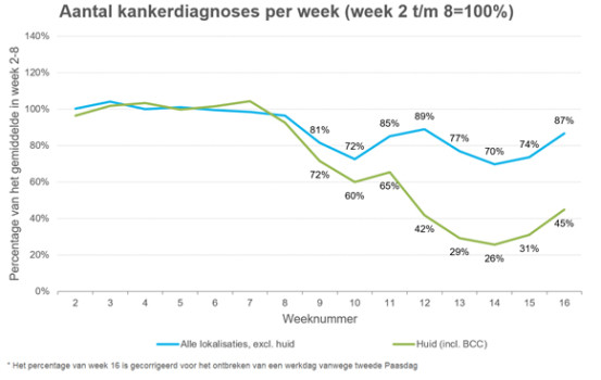 Het Integraal Kankercentrum Nederland (IKNL) monitort de gevolgen van de COVID-19-uitbraak op het aantal kankerdiagnoses op basis van de landelijke pathologiedatabase. Het IKNL zag het aantal diagnoses dalen vanaf eind februari 2020, maar inmiddels is het aantal diagnoses weer aan het stijgen.