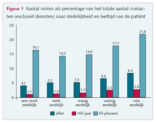 Op het platteland legt de huisarts relatief veel huisbezoeken af. Dat verschil tussen stad en platteland doet zich vooral voor bij het jongere deel van de bevolking en minder bij 65-plussers en mensen met een ernstige aandoening. Overdag en op werkdagen is gemiddeld 6,1% van alle contacten …