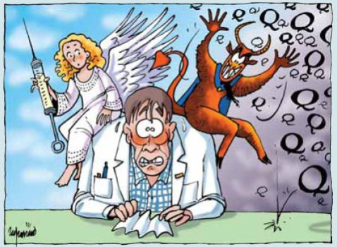 Als klein kind had ik een boek waarin op elke rechterpagina een engel was afgebeeld. Het zou een blij makend werkje zijn geweest, ware het niet dat op elke linkerpagina een duivel figureerde. Engel en duivel waren als achtergrond aanwezig, de teksten waren er overheen gedrukt. Wanneer het…