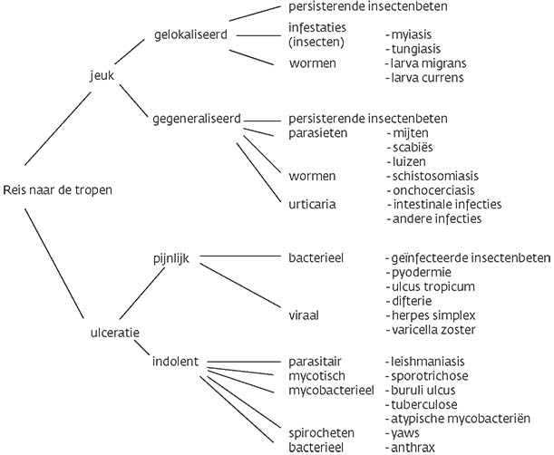 Huidziekten staan in de top-3 van meestvoorkomende ziekten bij reizigers die uit de (sub)tropen zijn teruggekeerd. De meestvoorkomende huidafwijkingen zijn larva migrans, insectenbeten, cutane…