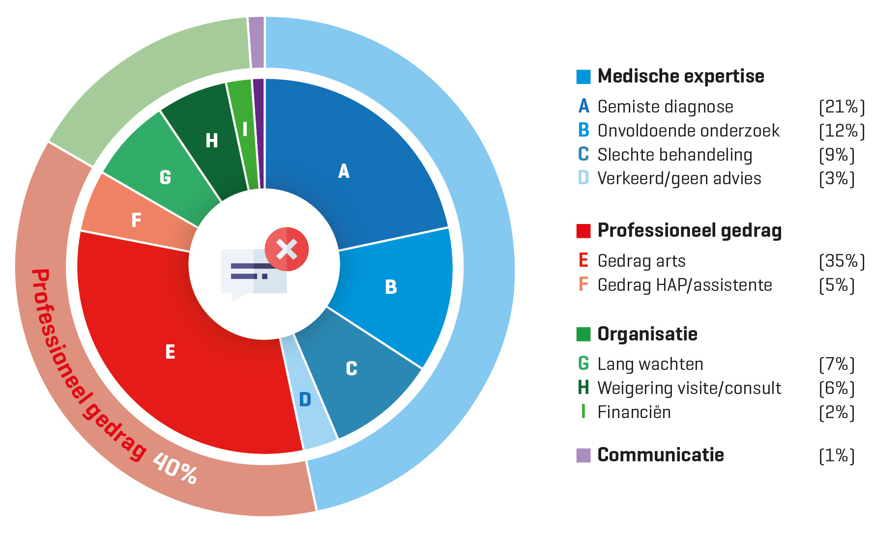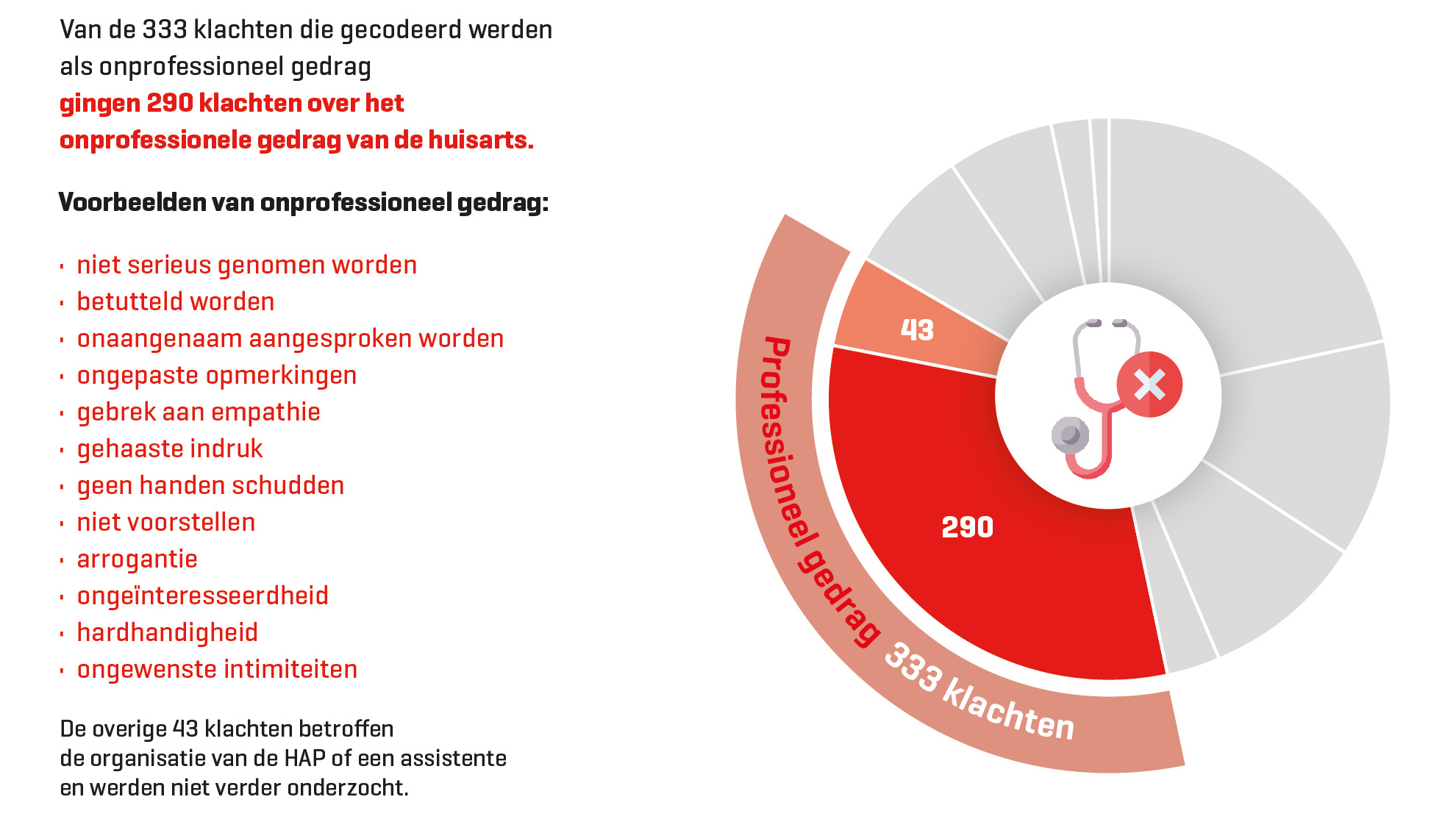 Klachten van patiënten bieden een unieke inkijk in de manier waarop patiënten hun artsen ervaren en wat ze van hen verwachten. Onderzoek naar de precieze inhoud van klachten is schaars, zeker als het om ervaren onprofessioneel gedrag gaat. Wij onderzochten klachten van patiënten over de zorg van een huisartsenpost, over een periode van 10 jaar. De meeste klachten betroffen de huisartsen en gingen over medische expertise. Een tweede grote groep van de klachten betrof gedrag van de huisartsen dat patiënten als onprofessioneel ervaarden.