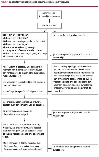 Een gerichte anamnese en een algemeen lichamelijk onderzoek vormen de hoeksteen voor het beleid bij kinderen die een vreemd voorwerp hebben ingeslikt. (Spoed)verwijzing naar de tweede lijn is noodzakelijk bij patiënten die ABCDE-instabiel zijn, patiënten die tekenen van ontsteking (koorts)…