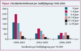 Kinkhoest komt ondanks een hoge vaccinatiegraad nog regelmatig voor. Om de drie tot vier jaar is er een epidemie. Sinds de invoering van het acellulaire vaccin – voor vierjarigen in 2001 en voor nuljarigen in 2005 – worden de epidemieën milder en is de piek verschoven naar de tienerleeftijd. …