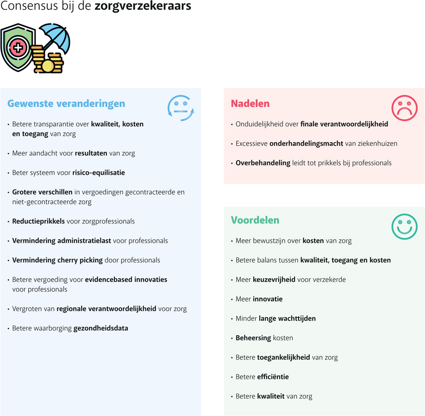 In het Nederlandse zorgstelsel staat gereguleerde marktwerking centraal. Er is discussie over de voor- en nadelen van dit stelsel, ook in de eerste lijn. De respondenten van ons online Delphi-onderzoek bleken vooral nadelen te zien en verandering op een groot aantal punten wenselijk te vinden. Bij verdere uitwerking en optimalisering van het huidige zorgstelsel moet rekening worden gehouden met de gewenste veranderingen.