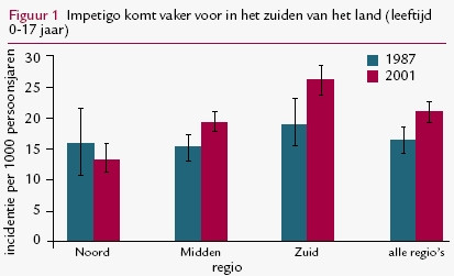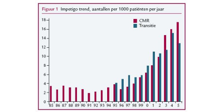 Tot begin jaren negentig leek impetigo steeds minder vaak voor te komen. Meestal werd dat verklaard door de kleinere gezinnen, de gestegen welvaart en verbeterde hygiënische omstandigheden. Die dalende tendens lijkt te zijn omgebogen. In vergelijking met 1987 ging in 2001 een kwart meer kinderen…
