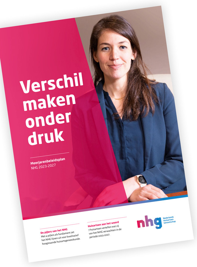 Op de ALV van 22 juni 2023 is het nieuwe NHG meerjarenbeleidsplan unaniem aangenomen. Onder de titel ‘Verschil maken onder druk’ verankert het NHG zijn sterke positie binnen de eerstelijnszorg. Zo dragen we eraan bij dat huisartsen samen met hun team de best mogelijke zorg kunnen bieden aan hun patiënten in alle levensfasen.