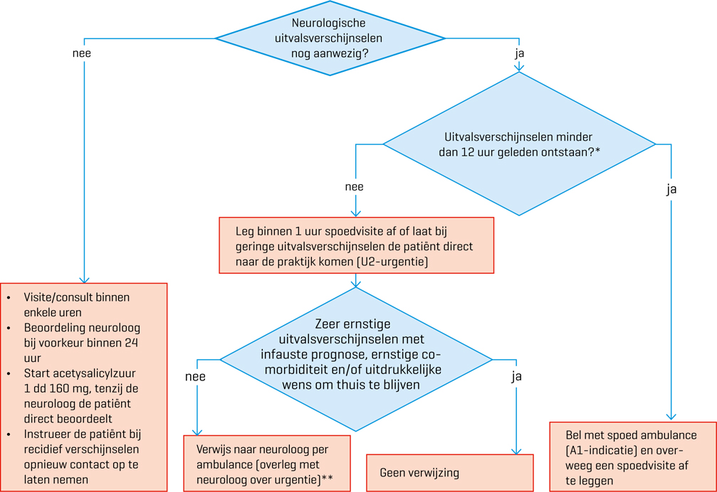 In de herziene NHG-Standaard Beroerte is het verwijsbeleid in de acute fase aangepast, omdat intraveneuze trombolyse en endovasculaire behandeling bij een klein deel van de patiënten ook na de termijn van 4,5 respectievelijk 6 uur nog effect kunnen hebben. Daarnaast krijgen de differentiaaldiagnose bij aanwijzingen voor een beroerte in het vertebrobasilaire stroomgebied en neuropsychologische functiestoornissen na een TIA meer aandacht. Verder zijn er kleine aanpassingen gedaan in de medicamenteuze secundaire preventie.