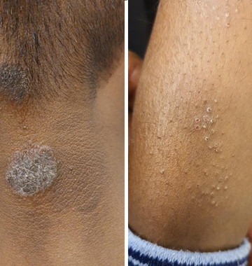 Een 10-jarige bewoner van een asielzoekerscentrum, afkomstig uit Eritrea, komt op het spreekuur in verband met jeukende plekken op de hals en het rechter onderbeen. De jeuk is enkele weken geleden ontstaan. Hij is bekend met oligoartritis (in het kader van juveniele idiopathische artritis) en uveïtis, waarvoor hij oraal methotrexaat, prednisolon en acetazolamide krijgt. Bij lichamelijk onderzoek zie je droge, schilferende maculae op de nek en een papuleuze uitslag op het onderbeen. De betrokken huisarts dacht aanvankelijk aan dermatomycose. Behandeling met een combinatiepreparaat van ketoconazol 2% en hydrocortison 1%, in combinatie met cetomacrogolcrème, heeft slechts een matig effect. Daarop verwijst de huisarts de jongen naar een dermatoloog voor verdere diagnostiek.